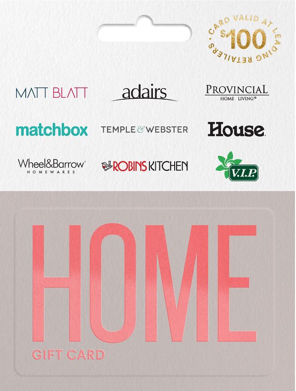The new Home Card was launched last month and offers your loved one not just one, but nine different places that they can redeem their gift card. As well as V.I.P., they can choose from House, Wheel and Barrow, Matt Blatt, Provincial Living, Adairs, Matchbox, Temple and Webster and Robins Kitchen.