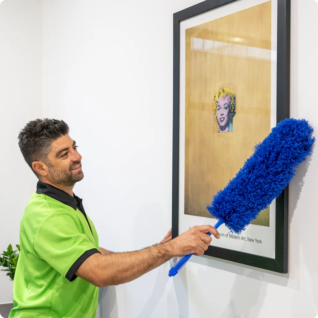 Our cleaning experts use a variety of tools, including damp microfibre cloths, vacuum cleaner attachments, and other specialised dusting tools, to effectively remove dust and allergens from your home.
